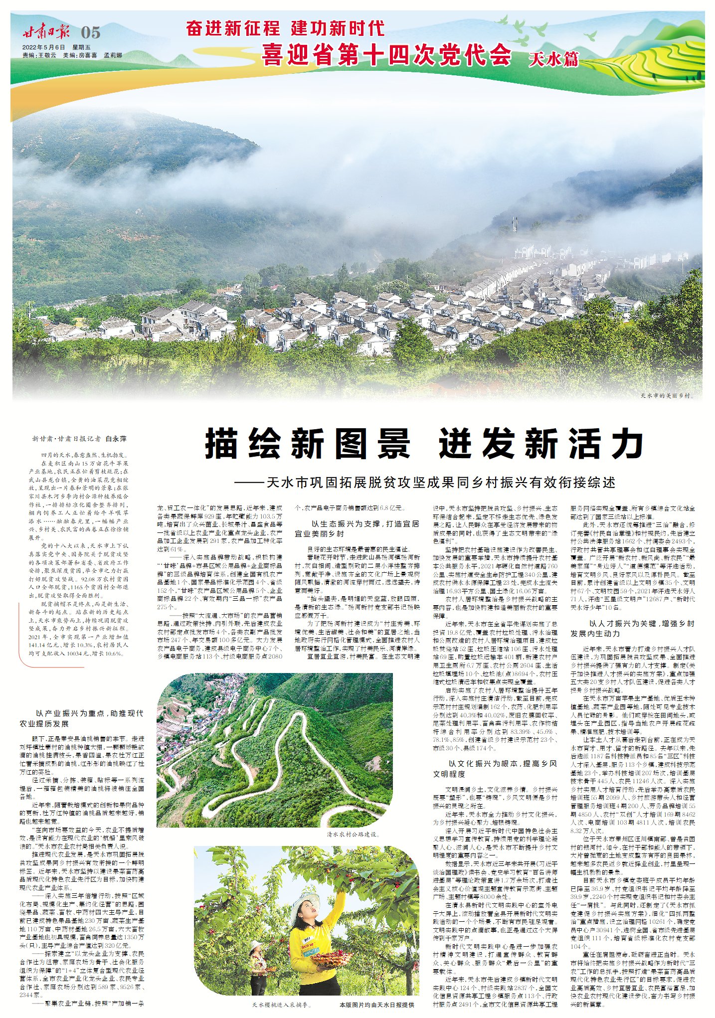 【奋进新征程 建功新时代——喜迎省第十四次党代会 · 天水篇】描绘新图景 迸发新活力——天水市巩固拓展脱贫攻坚成果同乡村振兴有效衔接综述