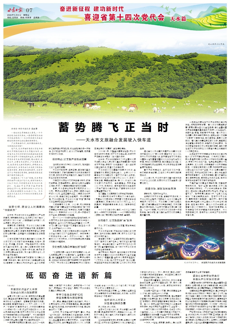 天水市不断探索,追寻答案:高位推动重点文旅项目建设,不断加强特色文化旅游资源的开发利用,推动旅游产业转型升级,催生文化旅游新业态的形成和发展。
