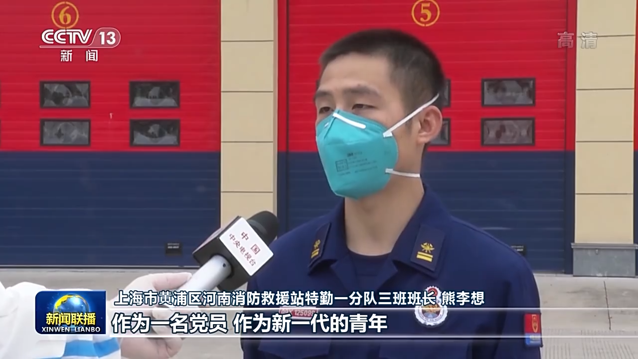 上海市黄浦区河南消防救援站特勤一分队三班班长 熊李想:作为一名党员,作为新一代的青年,就应该在困难的时候挺身而出,冲锋在前。