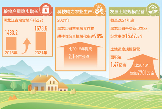 智能育种、卫星导航、农情监测……广袤的黑土地上,智能农业技术正在拓展应用,为农业高质量发展贡献力量。目前,黑龙江省耕种管收农业综合机械化水平达98%,基本实现农业生产全程机械化;农业科技进步贡献率达69%,高于全国9个百分点。