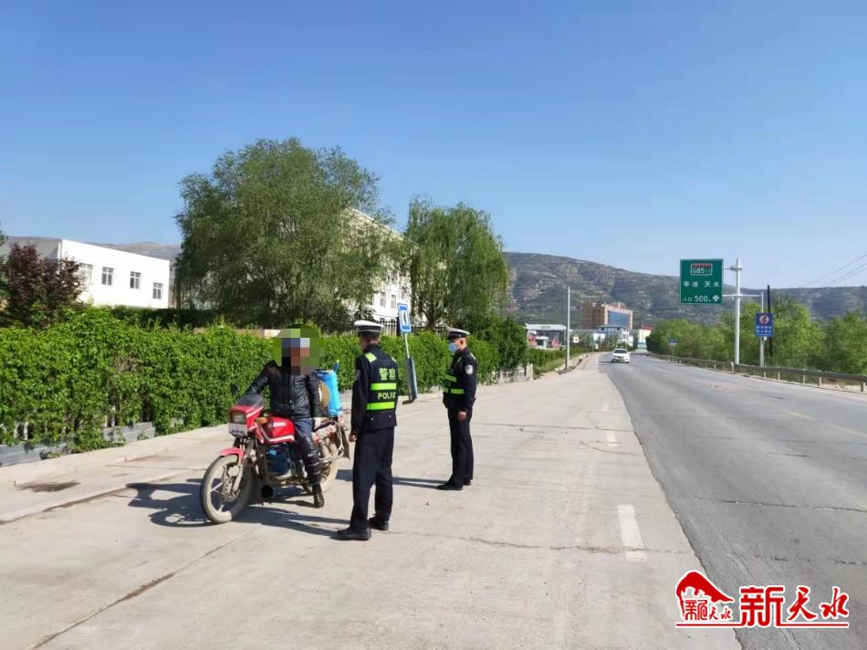 新天水讯【记者余碧波】为进一步巩固“一盔一带”安全守护行动,增强电动车、摩托车骑乘人员佩戴安全头盔使用率,着力实现道路交通事故预防“减量控大”工作目标,近日,秦安县公安局交警大队常态化开展“一盔一带”整治行动,严查摩托车骑乘人员不戴安全头盔的交通违法行为。