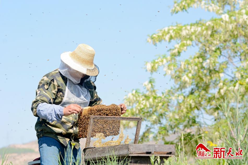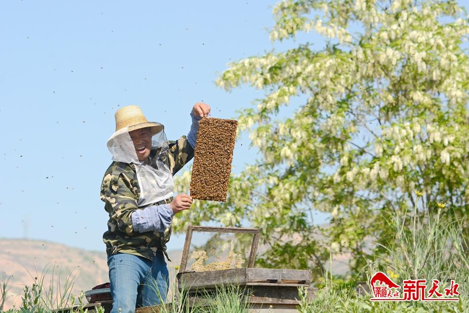 5月4日,来自四川德阳的养蜂人在秦州区太京镇整理蜂箱、提取蜂王浆、观察蜜蜂活动情况。每年的春夏时节,天水各县区花开四野,养蜂人携带蜂箱逐花香而来,采集洋槐花、山花等各种花蜜。