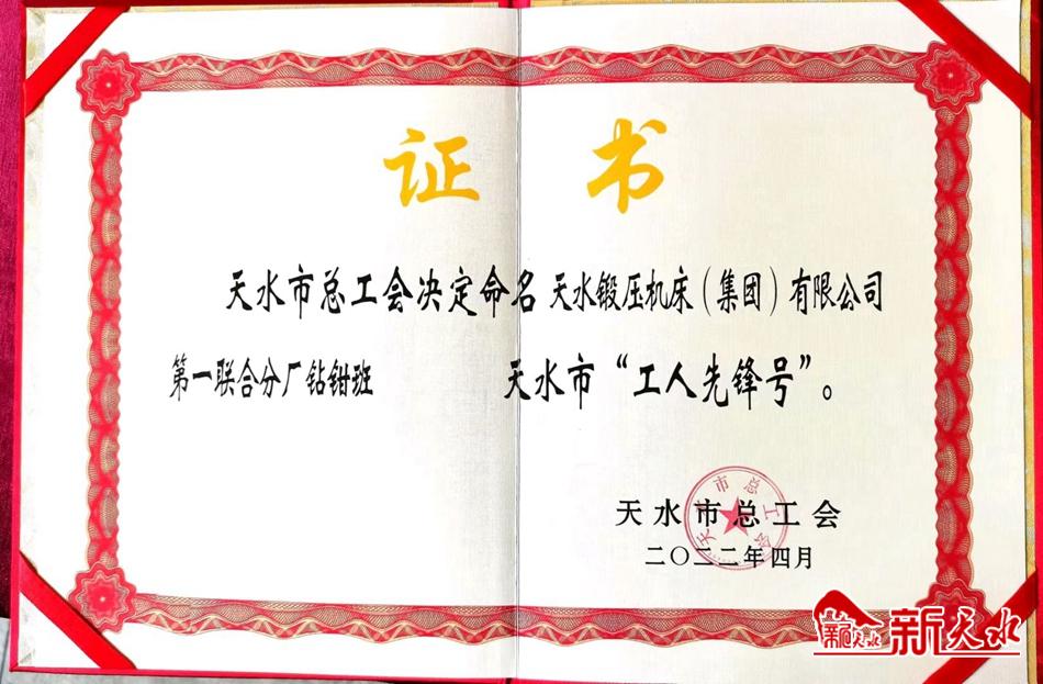 新天水讯 近日,天水市总工会授予天水锻压机床(集团)有限公司第一联合分厂钻钳班天水市“工人先锋号”荣誉称号。