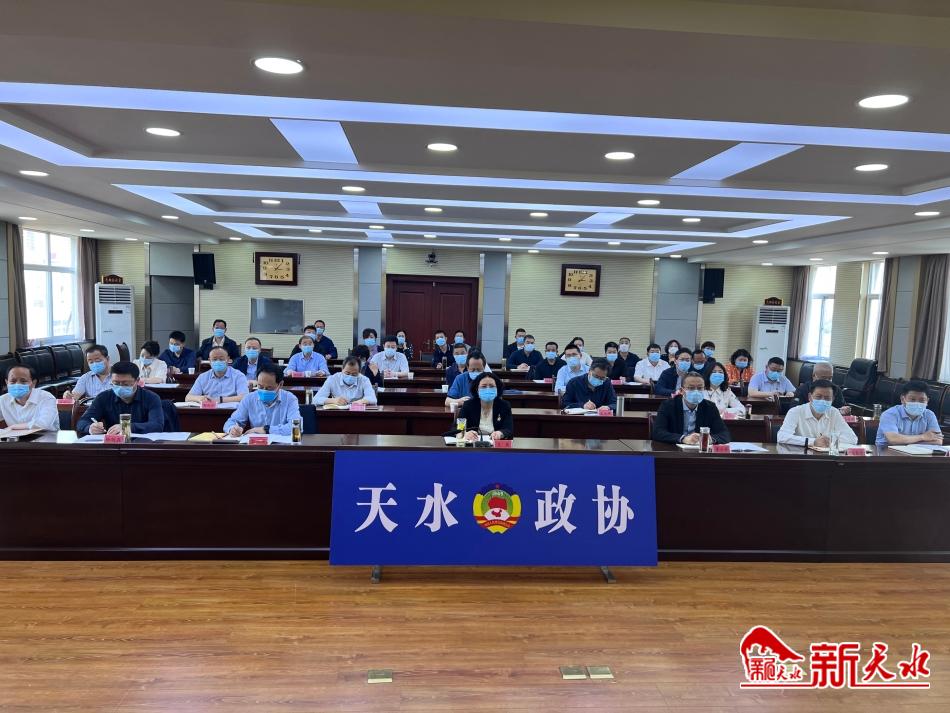研讨班以视频的形式开到市州政协。市政协党组书记、主席王燕,省政协委员、副市长董小平,市政协党组副书记、副主席郭明兴,市政协党组成员、副主席马勤学,市政协副主席杨铁森、罗增芳,市政协党组成员贾忠慧,市政协一级巡视员王振宇,以及住天水省政协委员、市政协常委和市政协机关各委办主任、副主任在天水分会场参加学习。