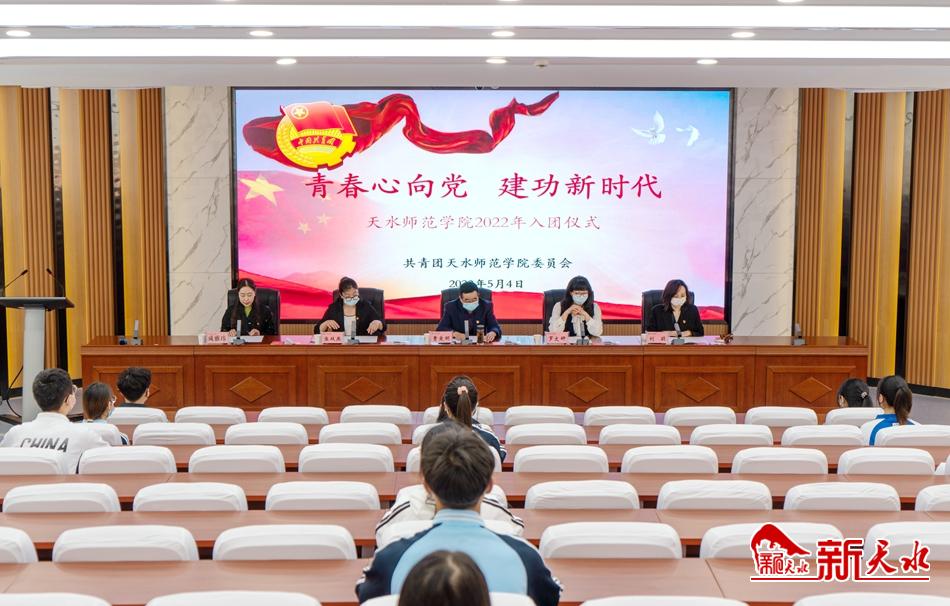新天水讯【记者李旺旺】为庆祝中国共产主义青年团成立100周年,践行“请党放心 强国有我”的青春誓言。5月4日,天水师范学院举行“青春心向党 建功新时代”2022年新团员集体入团仪式。