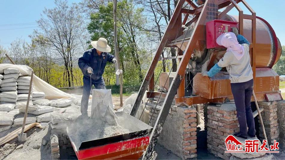 在该村乡村建设项目的施工现场,工人们推沙、和泥、搬运、砌砖......他们分工明确,秩序井然,各项建设工作如火如荼,村内一派繁忙景象。