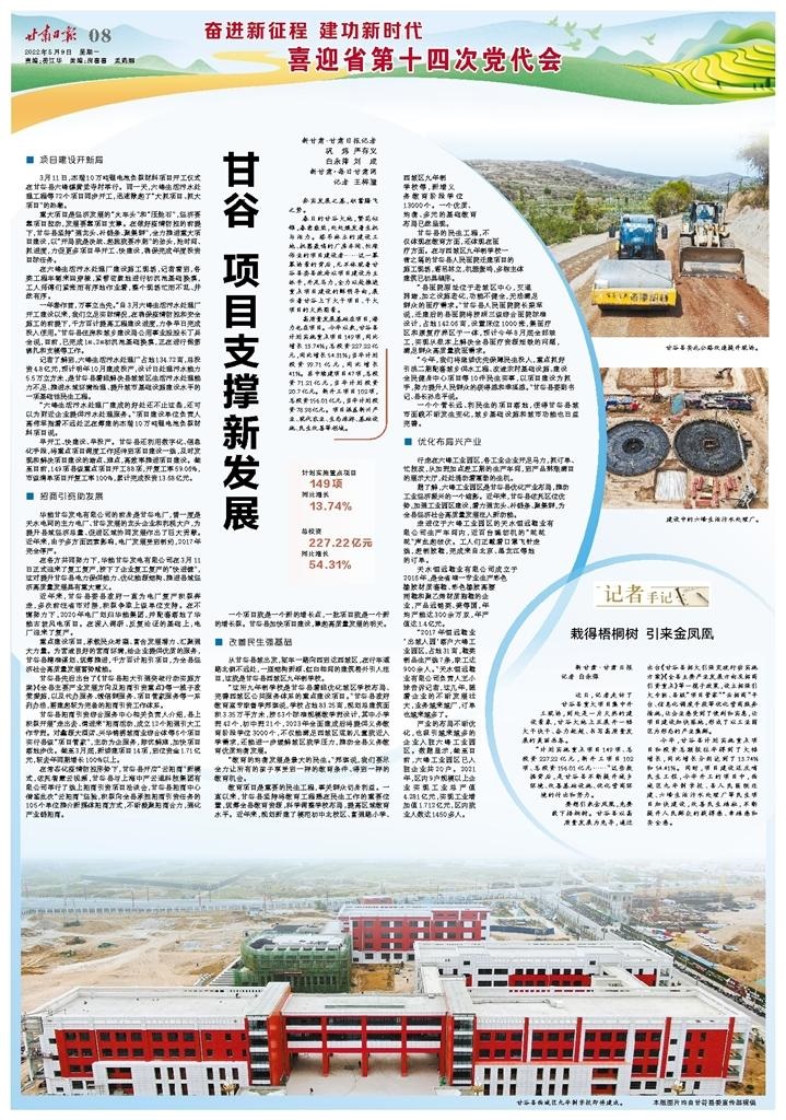 甘肃日报|【喜迎省第十四次党代会】甘谷:项目支撑新发展