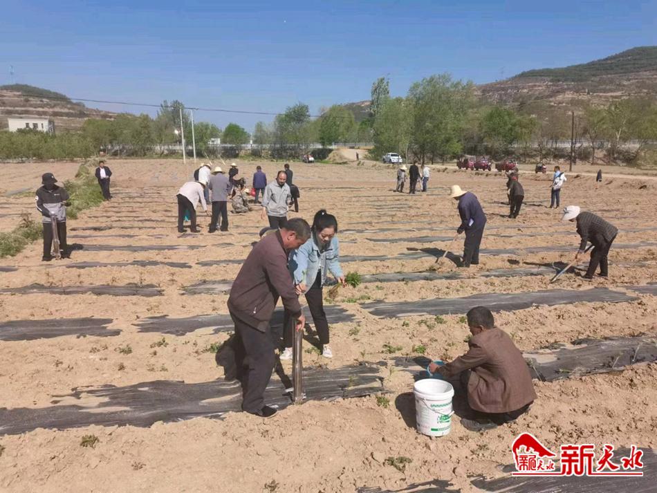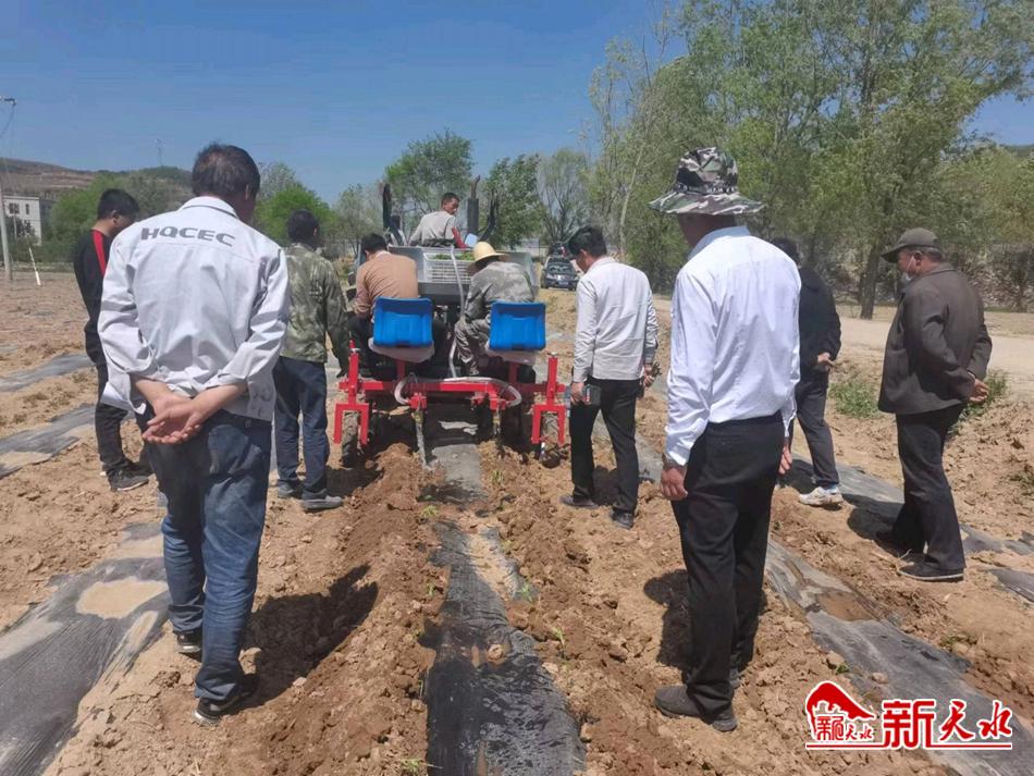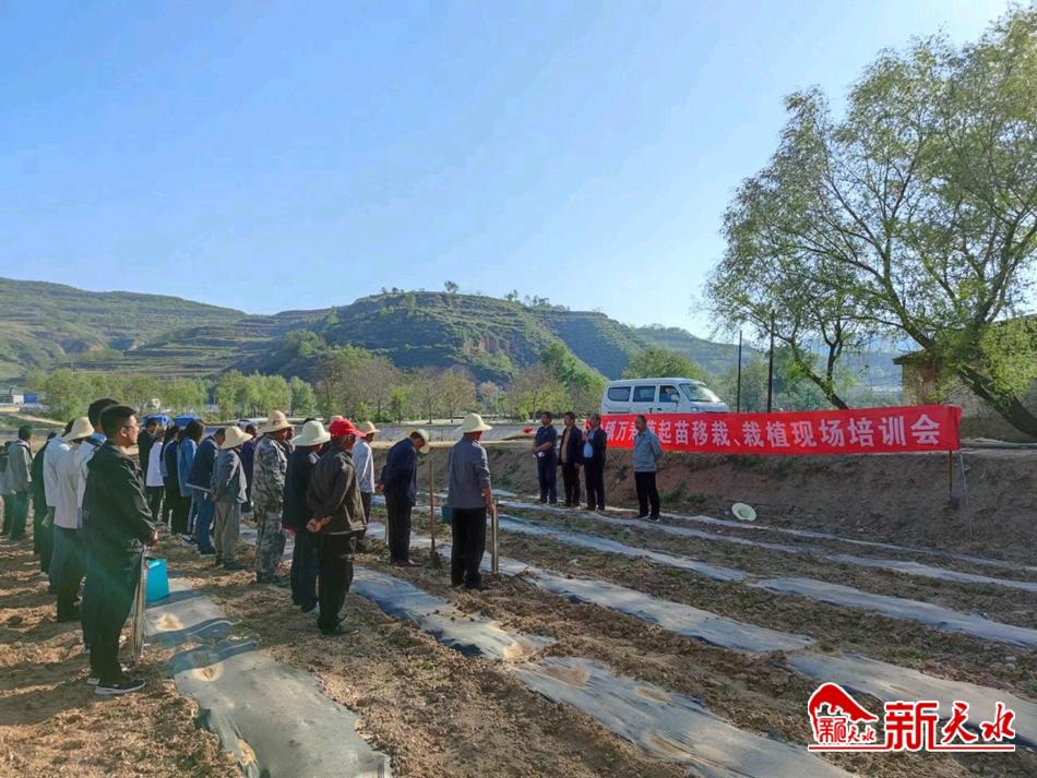 新天水讯 5月7日,清水县白沙镇组织开展全镇万寿菊起苗移植、栽植现场培训,演示机械栽植、简易工具栽植及人工栽植方式方法。