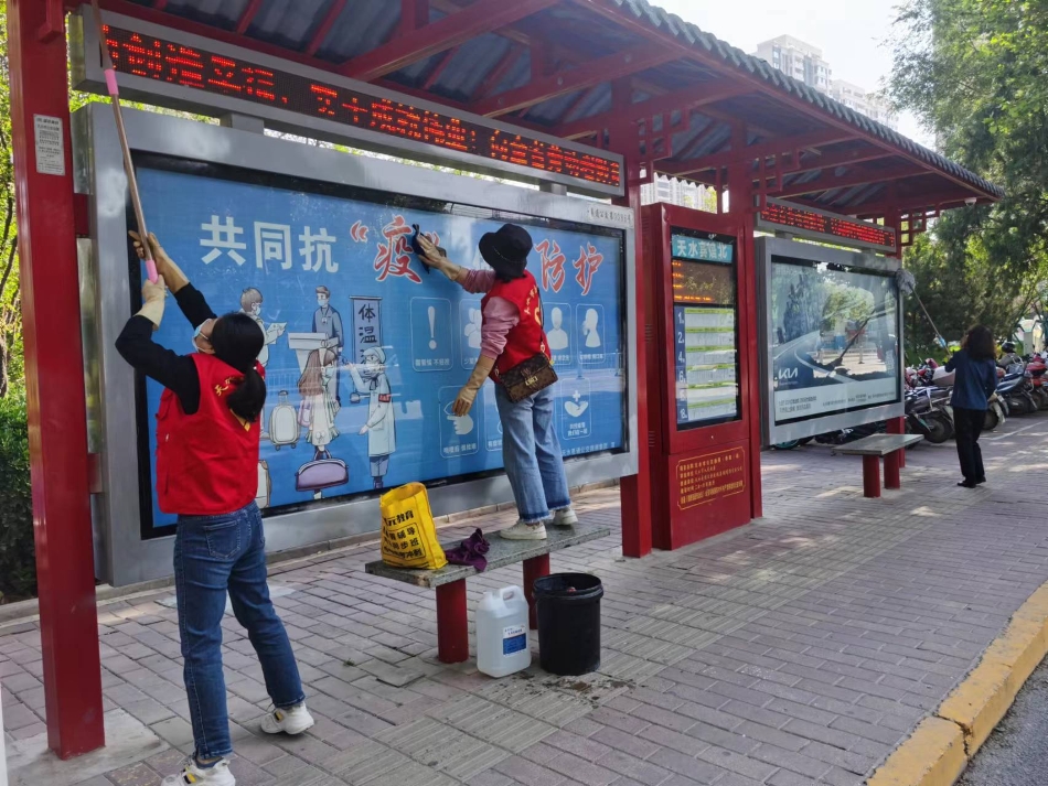 志愿者清洗公交站亭助力创城