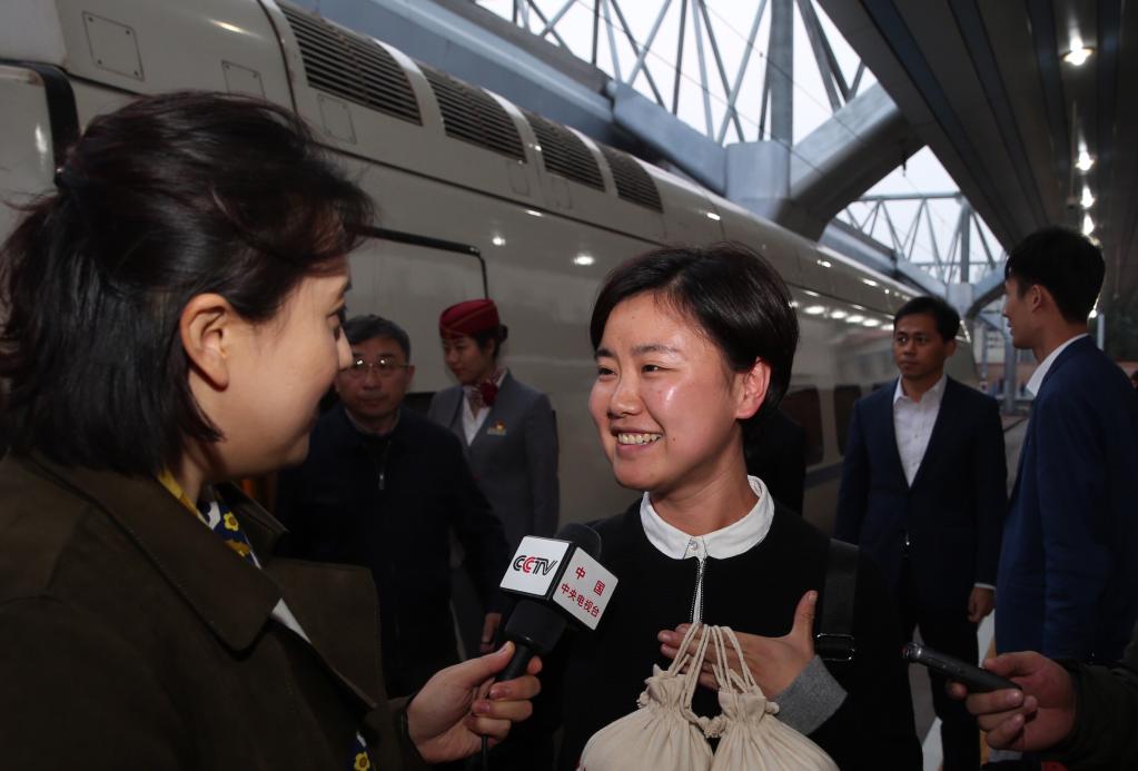 2017年10月15日,作为党的十九大代表的吴书香在接受记者采访。新华社记者金立旺摄