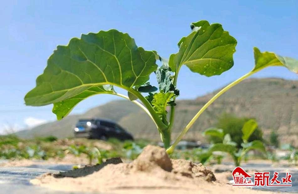 新天水讯 近日,马力镇柴庄村300亩高原夏菜种植示范点,西兰花幼苗移栽工作正在有序开展,一行行新移栽的西兰花幼苗生机勃勃,长势十分喜人。
