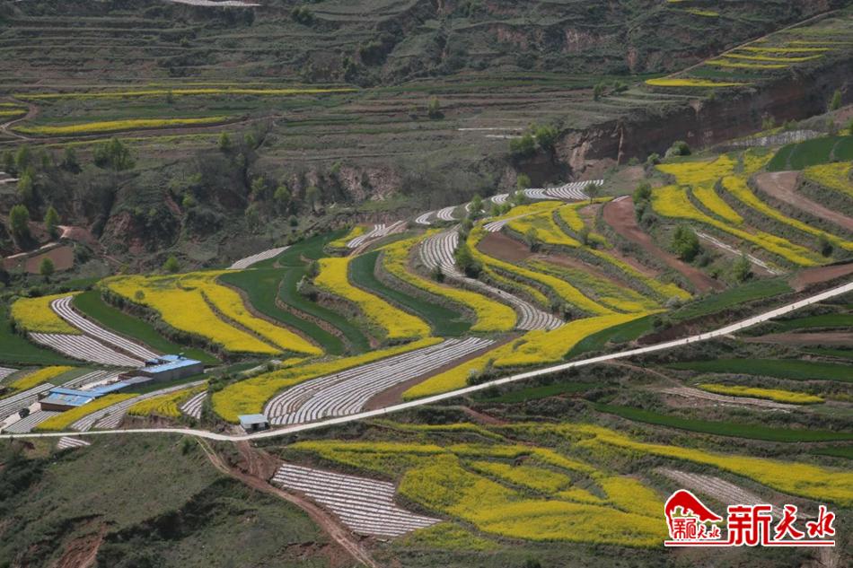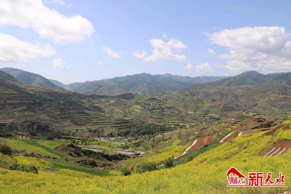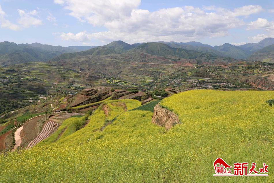 新天水讯【通讯员 闫君兰 蒲爱民 管秋勇】 近日,武山县龙台镇的万亩高山油菜花海陆续绽放,处处洋溢着花香的气息,满山的油菜花映入眼帘,呈现一片金色的海洋,一朵朵盛开的油菜花,宛如一幅田园风景画尽情舒展。