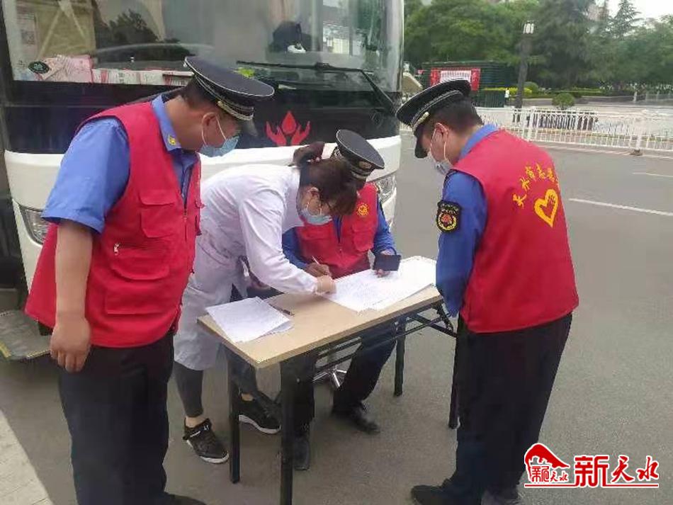 新天水讯 秦州区综合执法局七里墩中队党支部弘扬“人道、博爱、奉献”精神,组织中队全体党员参加无偿献血活动。