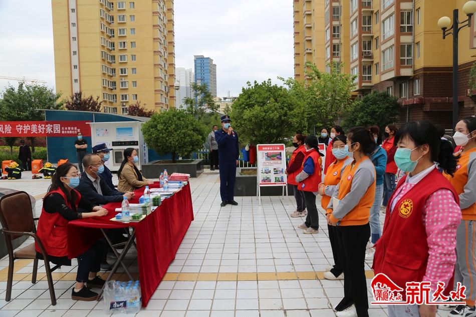 新天水讯【记者马凯】5月12日,是全国第14个防灾减灾日,秦州区消防大队联合天水郡街道藉水南路社区在山水新城怡乐园开展了防灾减灾宣传暨应急演练活动,秦州区应急管理局相关负责人、天水郡街道办事处相关负责人、社区工作人员、物业人员、辖区幼儿园以及小区居民参加了本次活动。