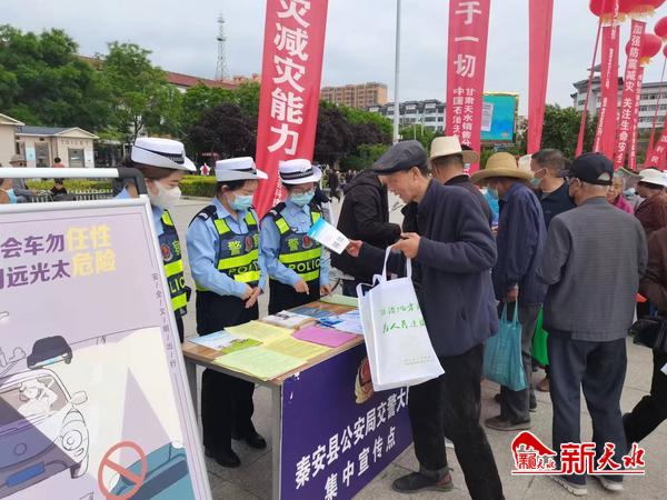 新天水讯【记者余碧波】5月12日上午,在全国防灾减灾日之际,秦安县公安局交警大队组织民警深入辖区兴国镇文化广场,多措并举开展“防灾减灾”主题宣传活动,力求从根源上防范化解群众身边的安全风险。