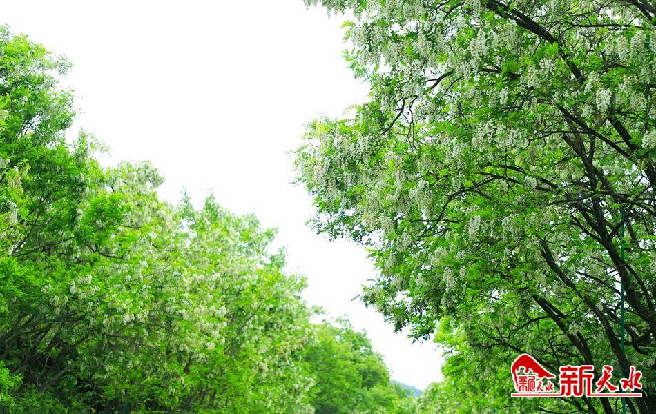 沿着邽山上的步道前行,一串串繁盛槐花风起且舞,在这个芳华五月尽情舒展它的柔美内敛,整片山峦笼罩在花海浓香之中,美不胜收。 走近细嗅,槐树成排,花枝累累,弥漫着槐花香,沁人心脾。香气盘旋在蜿蜒的环山公路上,置身山林中,深吸一口气,真是惬意,让人尽享自然之美。
