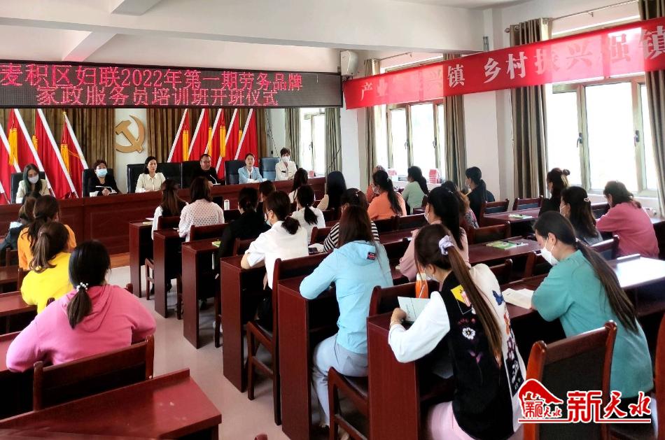 新天水讯【特约通讯员 窦耀辉】5月7日,麦积区妇联2022年第一期劳务品牌家政服务培训班在利桥镇开班,通过培训提高农村妇女就业技能和致富本领、拓宽妇女就业渠道,助力乡村振兴。