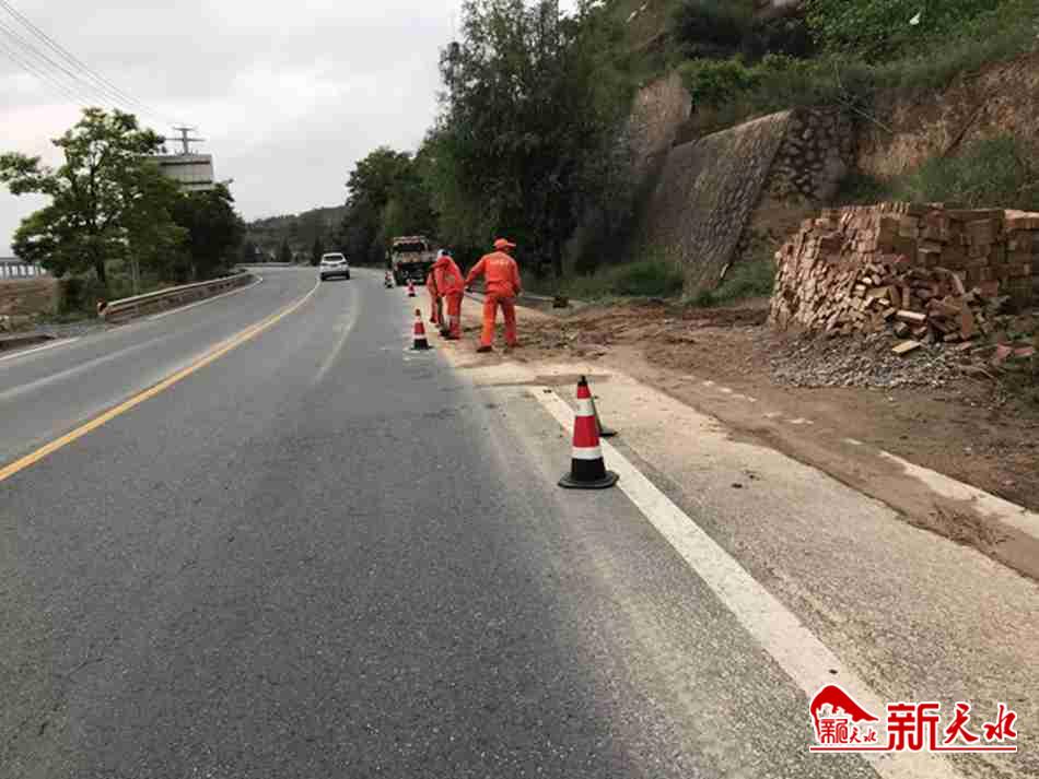 新天水讯 5月12日夜间,天水境内出现强降雨天气,导致秦安公路段管养的部分路段出现不同程度路面污染,秦安公路段积极行动,加强特殊天气路况巡查和易塌方落石路段进行安全隐患排查。