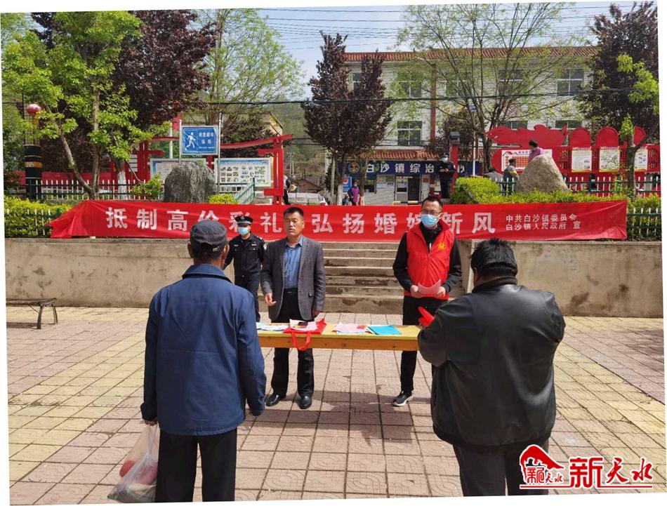 新天水讯 清水县白沙镇以新时代文明实践站为单元,以整治高价彩礼、婚丧陋习、聚众赌博、铺张浪费、攀比之风等歪风邪气为重点内容,以推动文明健康、绿色环保生活方式制度化、常态化、大众化为目标,采取“四+”措施,引导群众养成文明健康向上的生活方式和行为习惯。