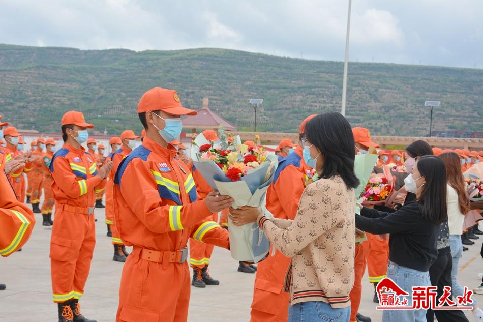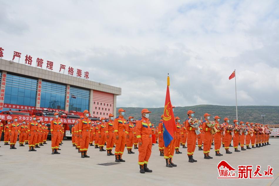 新天水讯【记者蔚军平】5月13日上午,天水市在市消防救援支队二十里铺站举行仪式,欢迎天水市赴张掖参加“应急使命•2022”高原高寒地区抗震救灾实战化演习的消防救援和森林消防指战员凯旋。
