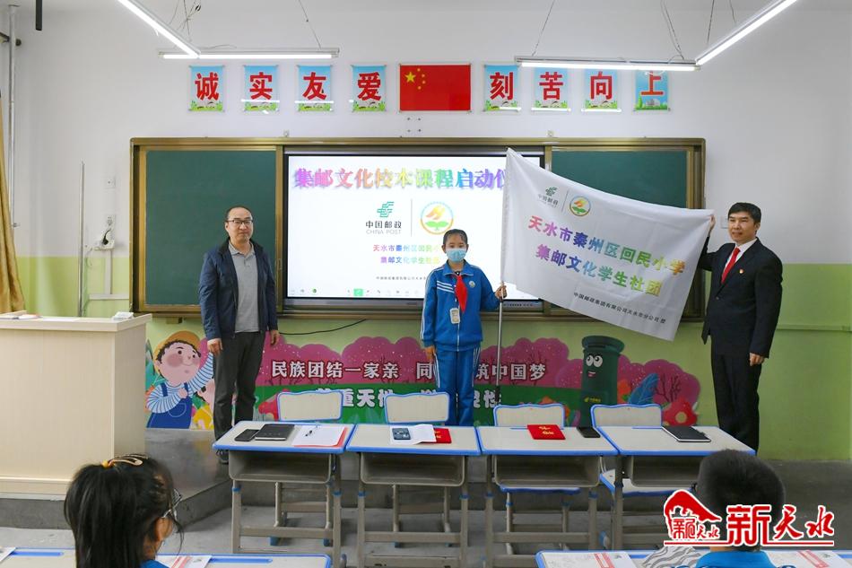 当日,回民小学举行了集邮文化校本课程启动仪式,成立了“天水市回民小学少年邮局”,将集邮课程纳入到学校的校本课程,成为了全市首所把集邮课纳入校本课程的小学。仪式上,中国邮政集团有限公司天水市分公司相关负责人为学校集邮文化社团授了团旗,该校为校外辅导员颁发了聘书,辅导员为回民小学集邮文化校本课程师生上了首堂集邮课。