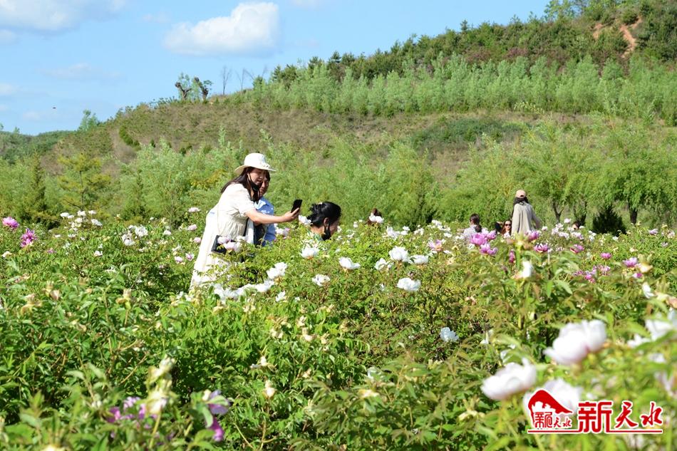 登临北山,邽山生态园牡丹、月季迎风招展、花香萦绕,木质步道曲径通幽,仿古管护房、观景亭、花栏吊架、休憩小广场古朴雅致,在蓝天白云的映衬下,俨然一幅风光旖旎的自然生态画卷,吸引不少游客观赏游览、打卡拍照。
