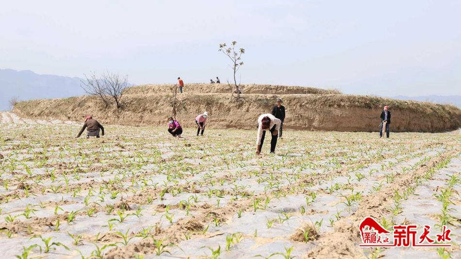 新天水讯【特约通讯员 郭永强 何慧 王正平 赵超】初夏,一场阵雨过后,海拔2100米的武山县马力镇万亩玉米种植基地,村民忙着把玉米苗从地膜中放出来。嫩绿的幼苗沐浴着阳光、吸收着雨水,正茁壮成长。该基地共有耕地面积10424亩,这几年玉米成为这片区域的主要种植作物之一。