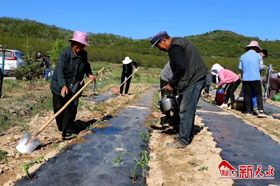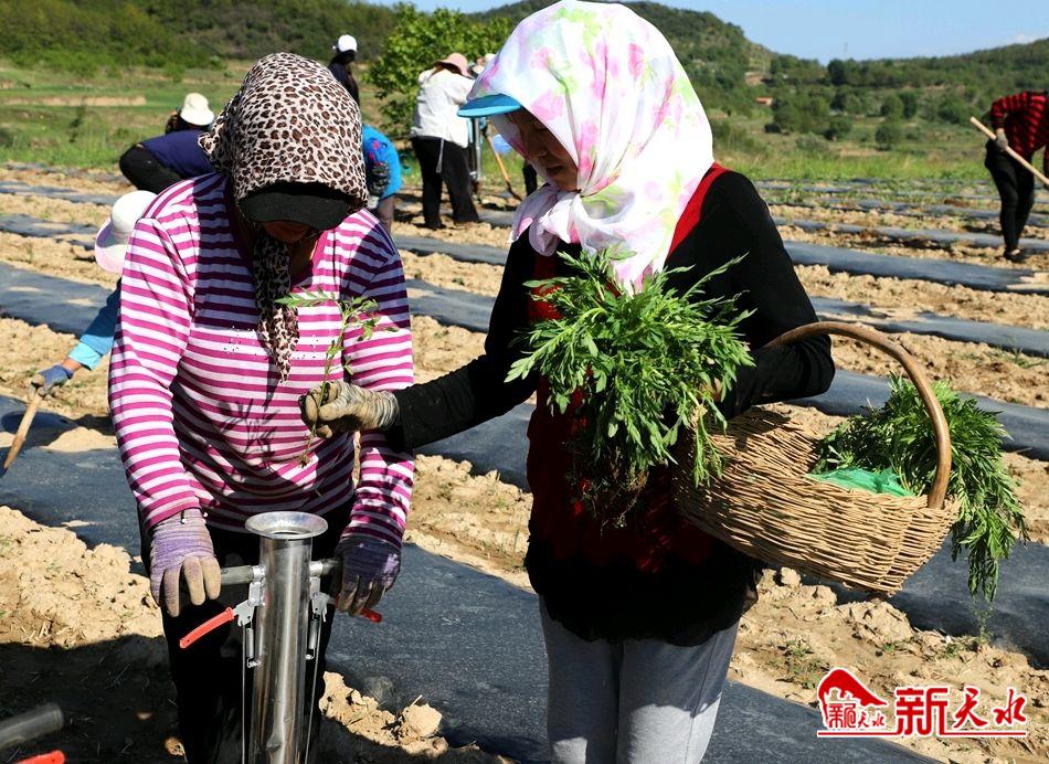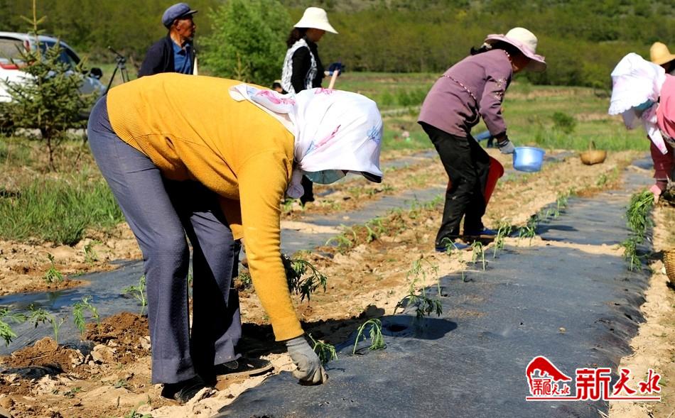 新天水讯 田家少闲月,五月人倍忙。当前正值万寿菊移栽的最佳时节,在清水县白驼镇鹰崖湾万寿菊种植基地内,移栽、培土、浇水的繁忙景象随处可见,田间地头满是一派热闹忙碌的耕种图景。