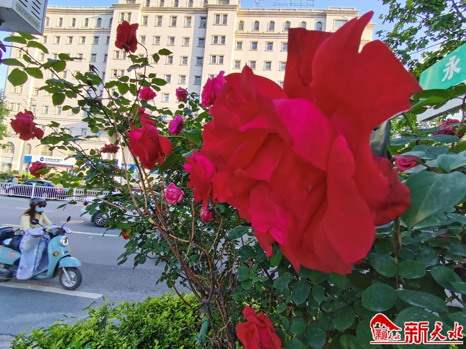 初夏的五月正是月季盛开的大好时节,遍布古城天水街头、花坛、路边的大量月季花亭亭玉立争相怒放,一朵朵、一簇簇、一片片,花色各异、品种不同、景致优雅,绚丽的花瓣层层叠叠、俏丽芬芳,淡黄色的花蕊温婉可人探出头来,散发出阵阵馨香。漫步在景区、公园、街边、小区、湖畔的人们,纷纷被这花姿秀美的“花中皇后”吸引而驻足观赏,颇有人在画中游的美好体验。那绽放得姹紫嫣红的美丽花海,犹如一幅幅绚烂多姿的动人画卷,将古城天水装扮得更加生动迷人、处处是景、如诗如画,大大提升了城区街道的景观效果,为大美天水的靓丽颜值添彩加分。