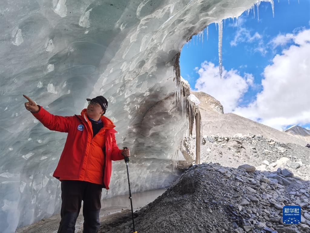 中国科学院西北生态环境资源研究院副院长康世昌在珠峰东绒布冰川区域考察(5月8日摄)。新华社发