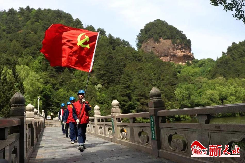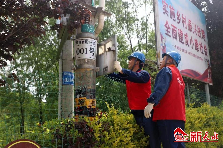 5月17日,麦积供电所员工在麦积山景区对用电设施进行日常巡视检修。