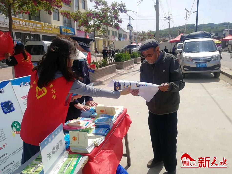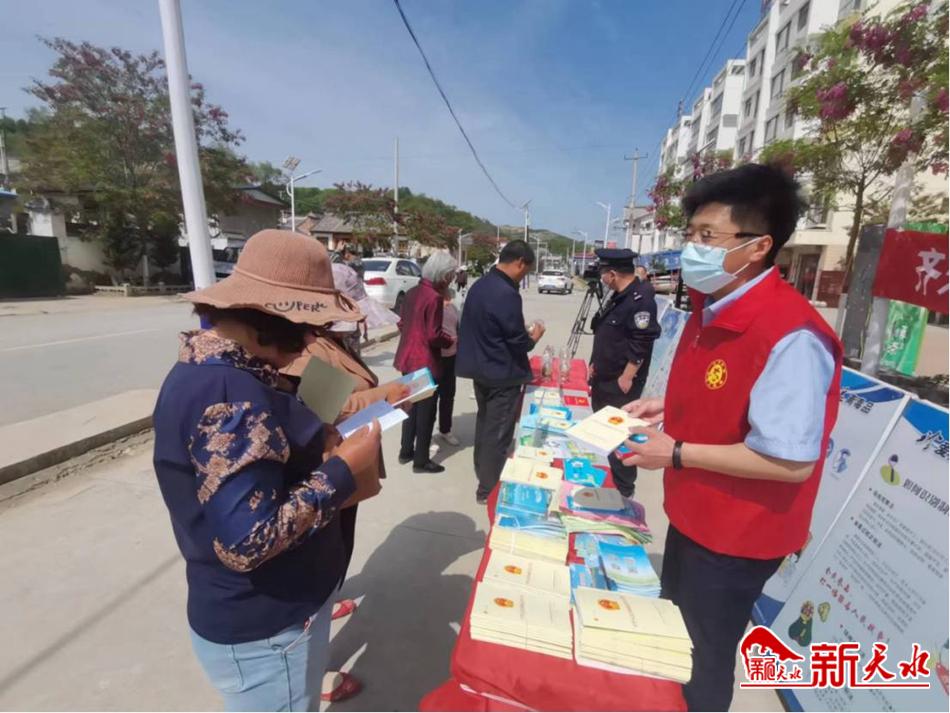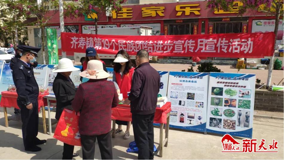 新天水讯【通讯员 马旭辉】5月19日,秦州区齐寿镇新时代文明实践所和齐寿镇派出所在九源村市场开展第19个民族团结进步宣传月活动。