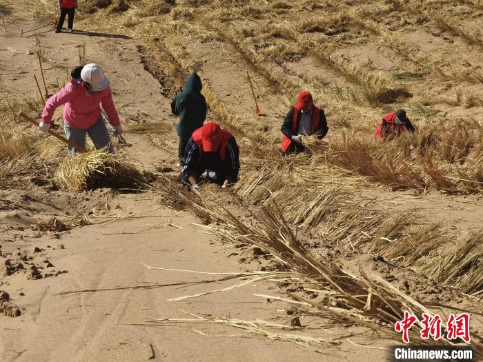 2021年10月中旬,甘肃省武威市凉州区举行2021年秋季机关干部义务压沙活动。(资料图) 闫姣 摄