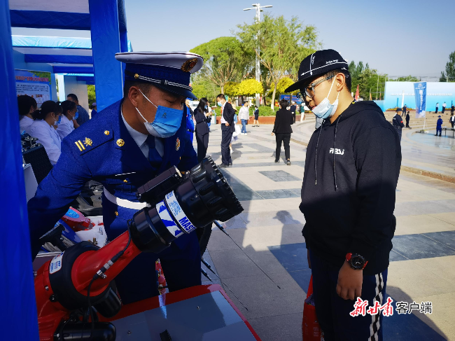 消防人员介绍消防灭火机器人的功能。 新甘肃·甘肃日报记者 徐俊勇 摄