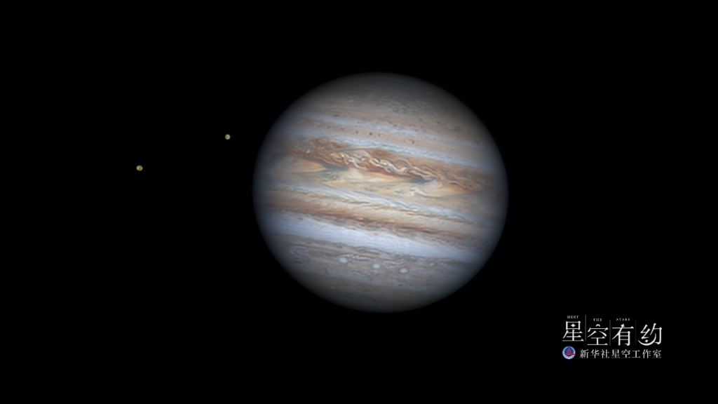 这是广东省天文摄影爱好者周志伟2020年7月20日在珠海市拍摄的木星及其两颗卫星。(本人供图)