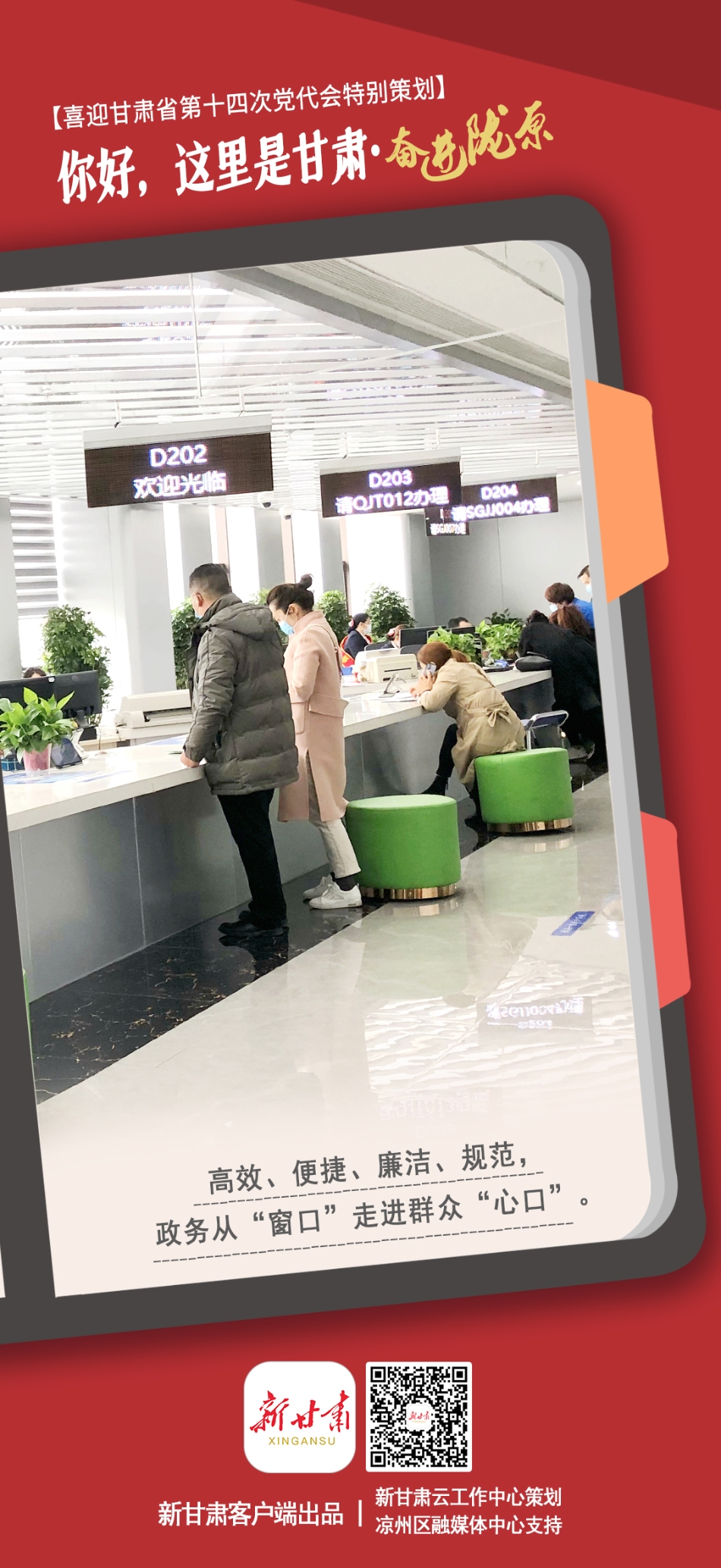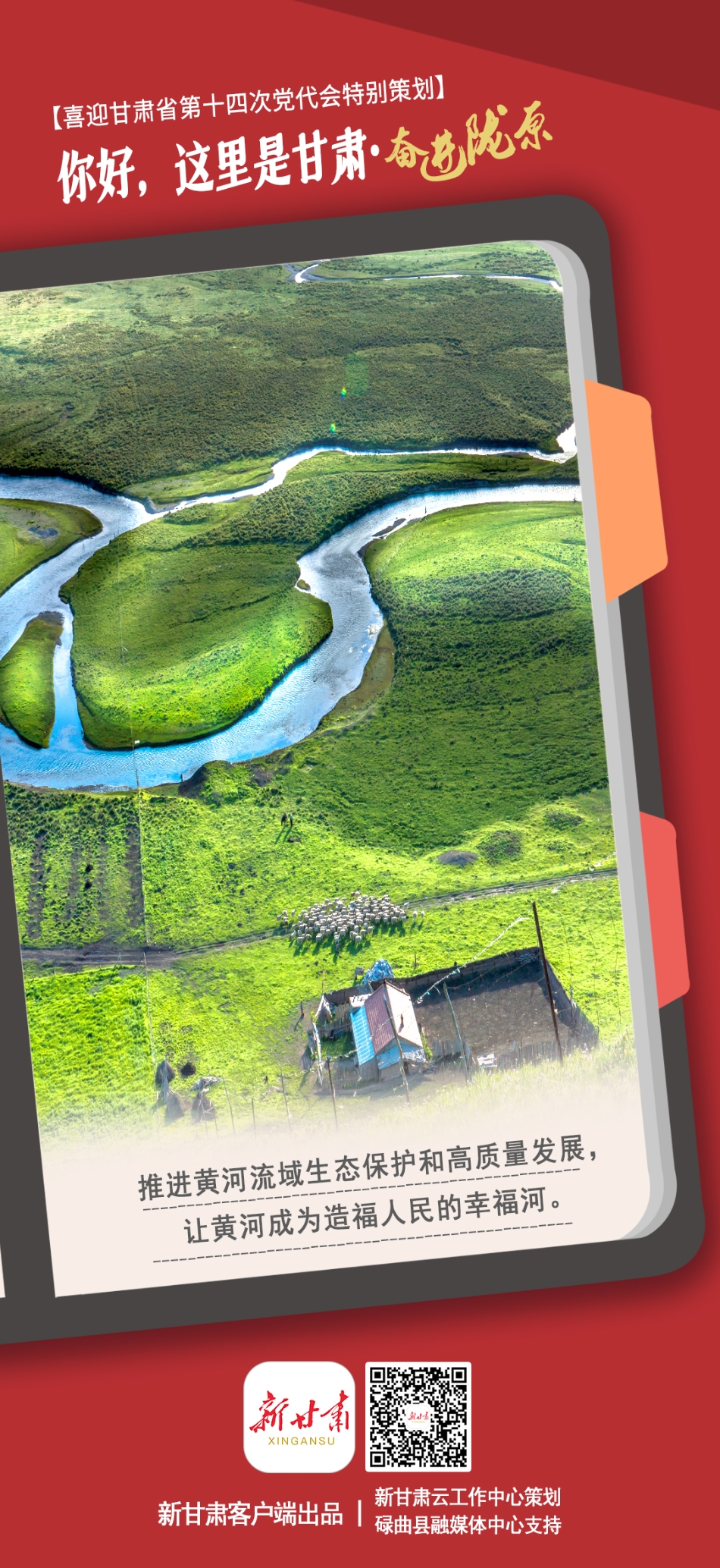 新甘肃客户端策划推出【你好,这里是甘肃——奋进陇原】系列海报,该系列海报选取省内黄河保护、生态优化、政务服务、县域发展、教育教学、医疗改革、住房保障、品牌产业等主题进行集中展示,每张海报的二维码均关联对应地区的相关新闻。欢迎大家长按二维码查看详情。