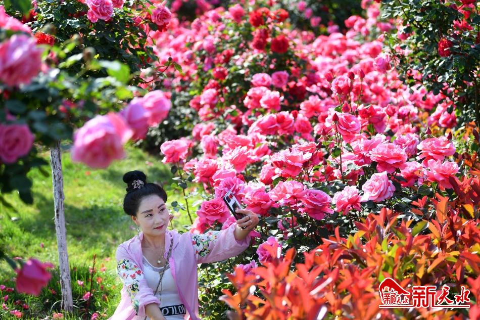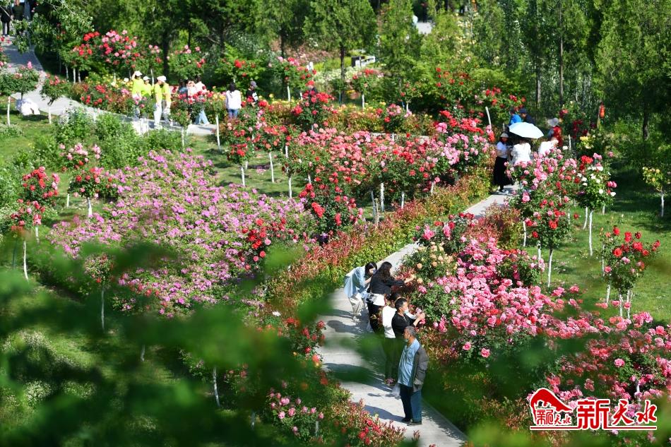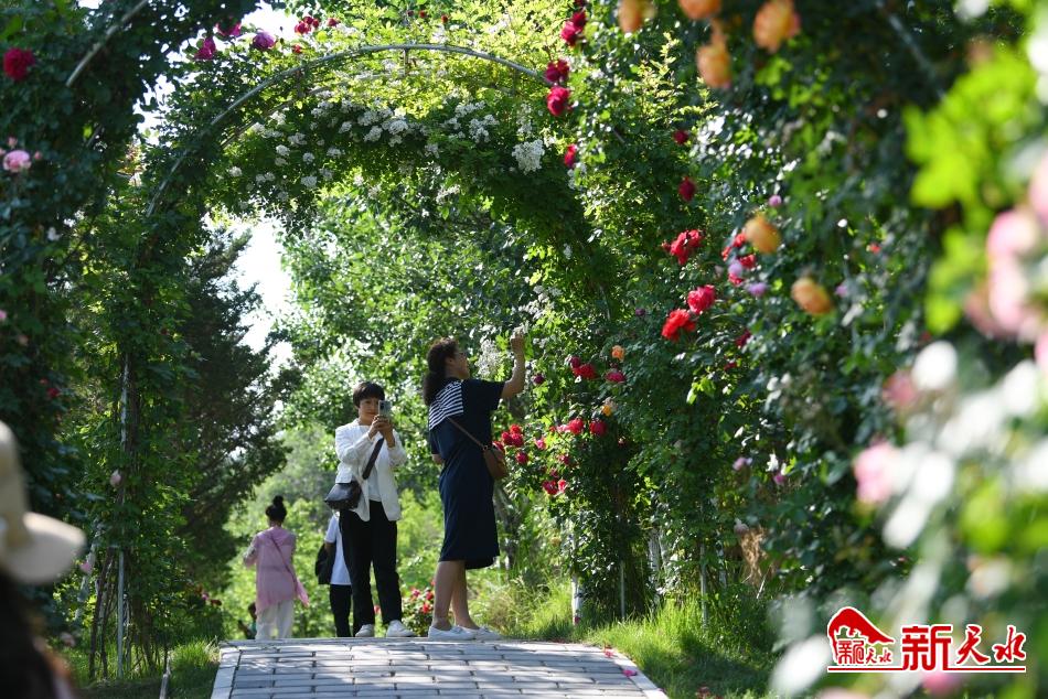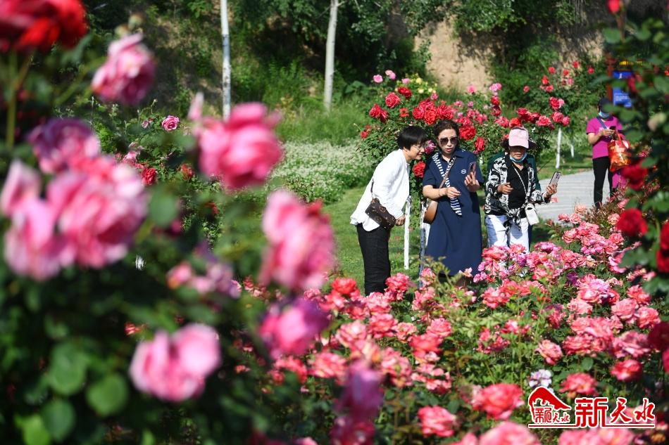 曲径通幽处,花海悦人心。5月23日,市民在位于秦州区玉泉镇玉泉村的北山月季生态园里赏花游玩。