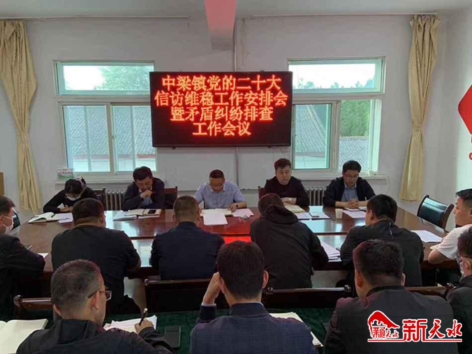新天水讯【通讯员 陈婷】为确保全镇社会秩序持续安全和谐稳定,有效化解各类影响社会安全稳定的风险隐患,确保党的二十大安保维稳工作落实落细。5月23日,秦州区中梁镇召开党的二十大信访维稳工作安排会暨矛盾纠纷排查工作会议,全体科级干部、片长参加会议。
