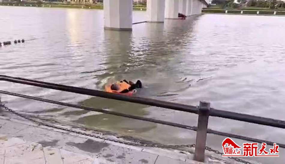 几乎用尽全力,陈玉忠终于靠近了落水者。这时,由于浸泡水里多时,湿衣裹身的陈玉忠已极度疲劳,但看到漂浮挣扎在水里的落水女子,听到桥面上人们的鼓掌加油声,他信心倍增,迅速将救生圈套在落水女子身上,他边游边扶着救生圈,在湖水岸边警务人员的救援绳索拉拽下,一点点向湖边游去……