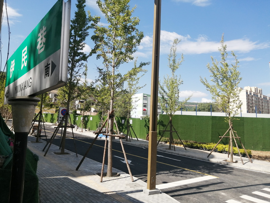 据负责现场绿化的天水卓立园林景观工程公司陶宝福介绍,伊民巷道路两侧共栽植了31株银杏树,胸径为16-20厘米。绿化带将栽植花灌木41株,红叶石楠等约500平方米,目前,正在加紧栽植,计划在26日全部完工。