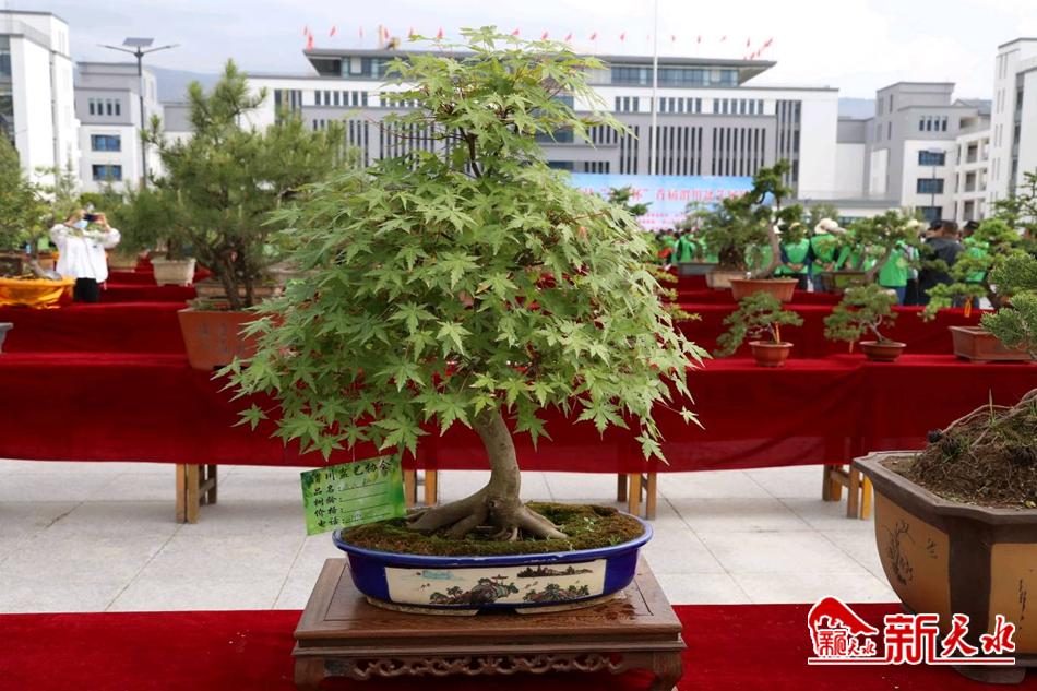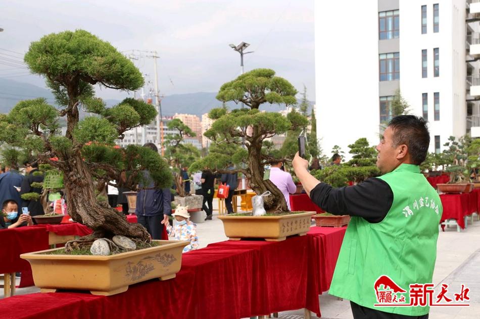 新天水讯【通讯员 张燕燕 包玉霞 杨彦春 】5月23日,武山县新一中校区内正在隆重举办武山县“金宸杯”首届渭川盆艺展销会,1200多盆风格迥异、各有特色的盆景吸引了无数花卉盆景爱好者驻足观赏。