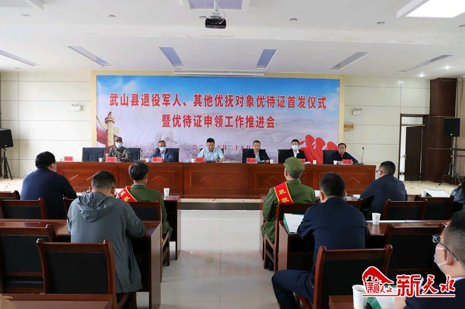 新天水讯 5月25日下午,武山县举行退役军人、其他优抚对象优待证首发仪式暨优待证申领工作推进会。