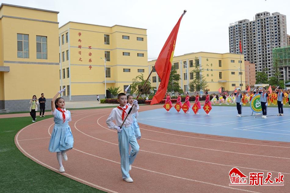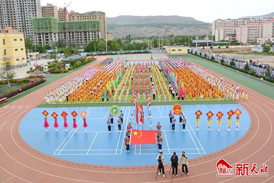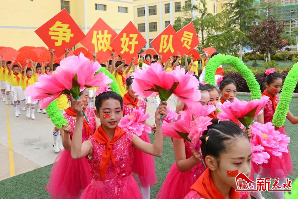 活动中,少先队队员代表献词、新队员入队,高年级少先队队员为第一批新入队队员佩戴红领巾,互敬队礼。团体操、安塞腰鼓等文艺节目汇演,展示了少先队员们积极向上、朝气蓬勃的精神风貌。活动为荣获2021年度天水市“红领巾奖章”三星章个人、集体代表颁奖。