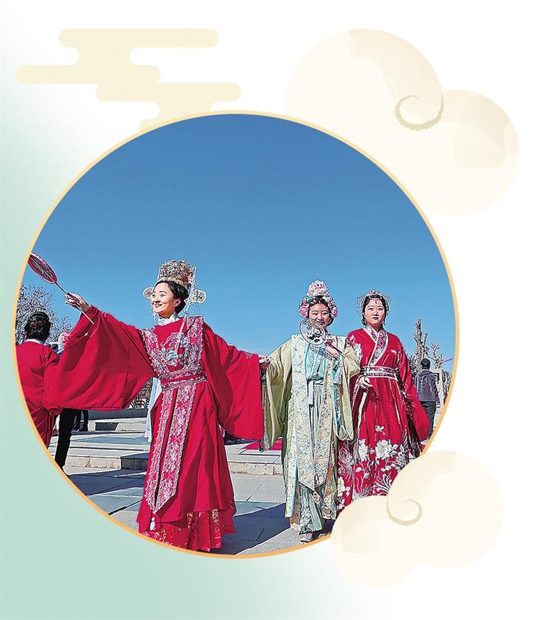 在武威雷台汉文化博物馆“绚丽汉服忆汉唐”活动中,汉服爱好者向游客展示汉服。 甘曜毓摄(中经视觉)