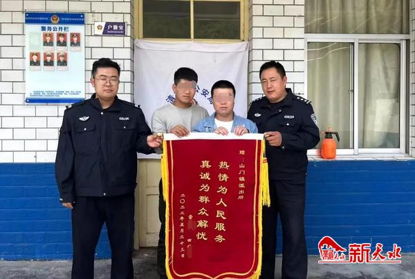 新天水讯【记者蔚军平】近日,清水县山门镇的雷先生和田先生两人将一面写有“热情为人民服务,真诚为群众解忧”的锦旗递到山门派出所民警手中,对民警热心帮助他们找回两部手机表示感谢。