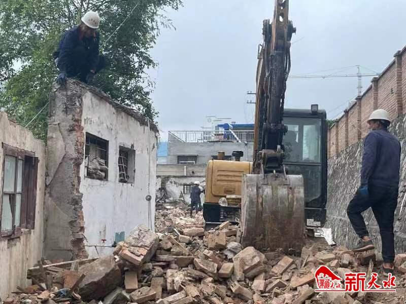 新天水讯【特约通讯员 何俐丽】近日,在石马坪社区联运二社家属院,秦州区石马坪街道联合执法、专业拆迁人员正在对8户自建危房进行集中拆除。
