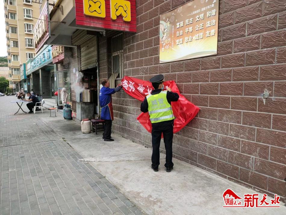 新天水讯【通讯员 朱学勇】近日,秦州区执法局天水郡中队对辖区主要道路的户外宣传广告横幅进行集中清理整治,创建“文明整洁、规范有序”的市容环境。