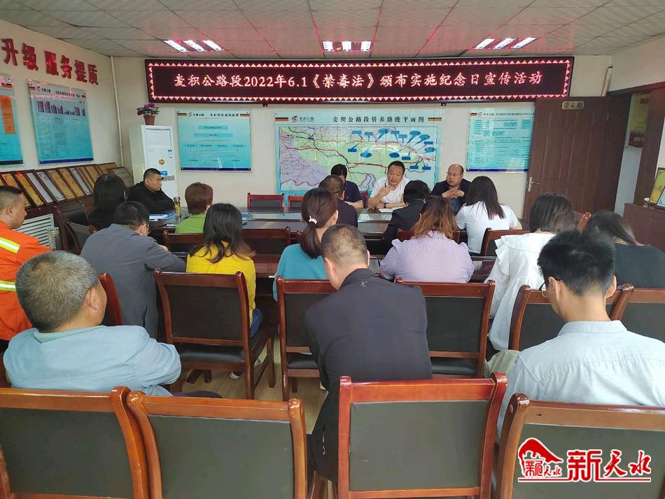 新天水讯 近日,麦积公路段组织干部职工开展《禁毒法》颁布实施14周年纪念宣传活动。
