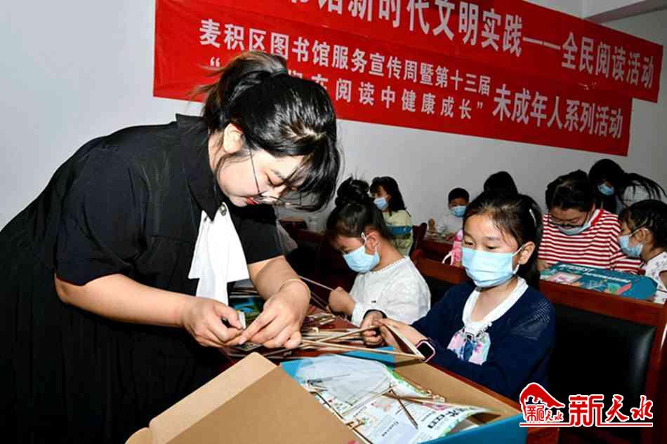 新天水讯【特约通讯员 窦耀辉】值此“六·一”国际儿童节来临之际、图书馆服务宣传周期间,5月29日,麦积区文体广电和旅游局、区图书馆开展了图书馆服务宣传周暨第十三届“让我们在阅读中健康成长”未成年人系列活动,宣传推介麦积区图书馆及服务,丰富未成年人的阅读体验,从小培养未成年人的阅读兴趣,让孩子们度过一个有意义的节日。