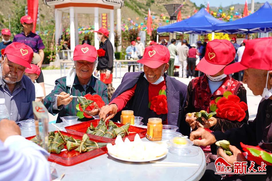 10对获得“好公公、好婆婆”称号的老人与乡贤、身边好人、道德模范等一起品尝了志愿者与村民们现场包的粽子。大家围坐在一起聊端午习俗,共话中华民族博大精深的文化,感受传统文化魅力,树立了节日文明新风尚。(图/秦安县融媒中心 董国庆)